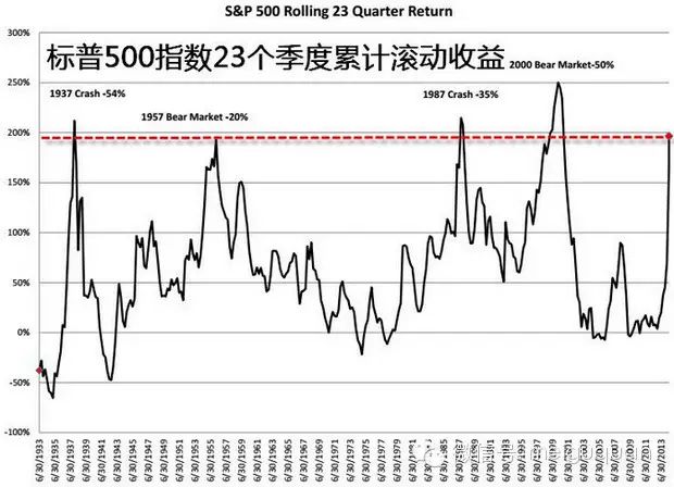 标普500指数自金融危机谷底的牛市已持续23个季度,股指的涨幅达到惊人的196%……不过历史上美股出现同级别涨幅之后市场都“不得善终”。