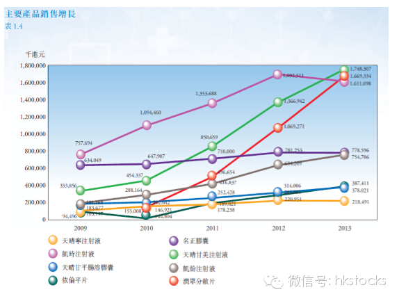 营业额约 578,234 万港元,较去年同期增长约 41.5%;盈利为 178,196 万港元,增长 25.7%。本集团的药品主要针对心脑血管及肝病治疗领域,并正在致力发展治疗肿瘤、疼痛、糖尿病、呼吸系统疾病以及其他疾病领域的药物,以满足市场和广大的医生及患者的需要。